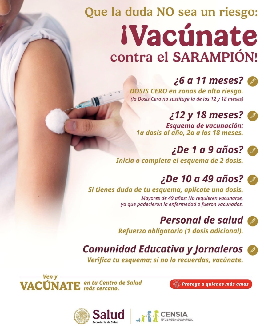 Como parte de la respuesta, el gobierno federal informó la adquisición de más de 27 millones de dosis de la vacuna contra el sarampión para su aplicación durante 2026, asegurando que el abasto será suficiente para cubrir la demanda en los próximos dos años.