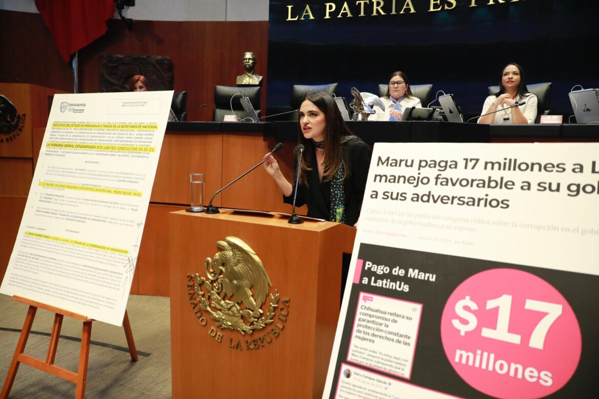 Desde la tribuna del Senado, Andrea Chávez respondió al reportaje de Latinus que reveló presuntos delitos como enriquecimiento ilícito, tráfico de influencias y promoción ilegal de su imagen, utilizando caravanas de salud financiadas por un empresario amigo de su padrino Adán Augusto López.