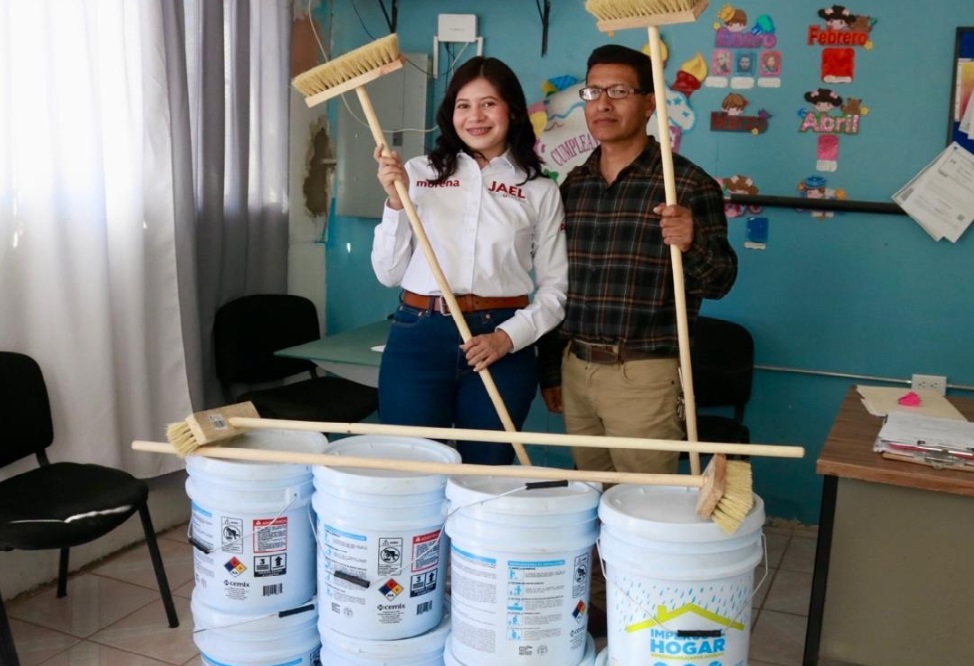 Con el compromiso de seguir fortaleciendo las condiciones de los espacios educativos, la diputada local Jael Argüelles realizó la entrega de impermeabilizante en la Escuela Primaria Juan Álvarez, beneficiando directamente a la comunidad estudiantil y docente.