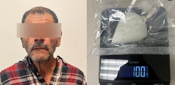 Durante la intervención policial, detectaron que se encontraba en posesión de una bolsa de plástico que contenía una sustancia química granulada con las características del cristal, con un peso de 100 gramos.