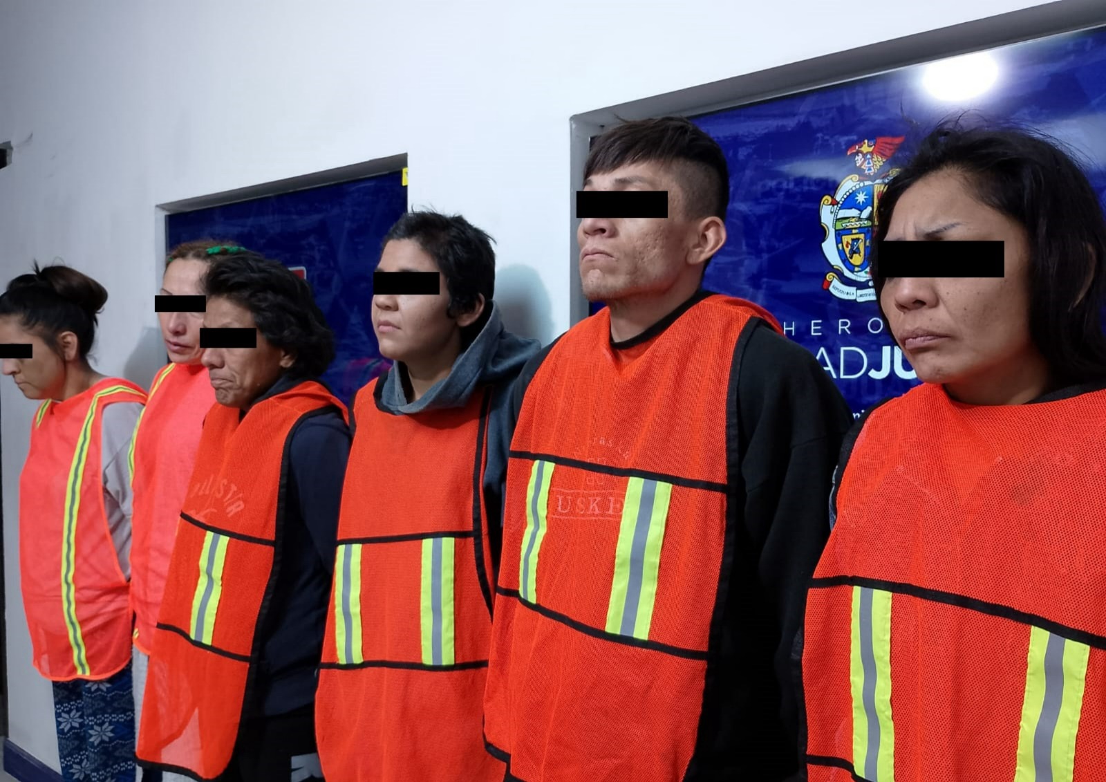 A 25 de noviembre del 2025.- Agentes de la Secretaría de Seguridad Pública Municipal capturaron Rafael S. G., Lizeth I. G., María de los Ángeles S. S., Diana Monserrat Z. B.,América Janet M. C., Juana Paola A. A. y dos adolescentes de 13 y de 17 años, por su presunta responsabilidad en la comisión de los delitos de privación ilegal de la libertad.