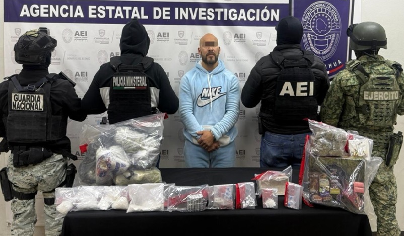 Elementos de la Agencia Estatal de Investigación, cumplimentaron una orden de cateo en un domicilio de la colonia Lucio Cabañas, en Ciudad Juárez, en donde detuvieron a quien dijo llamarse Daniel Alberto G. P. y aseguraron diversos narcóticos y cartuchos útiles.