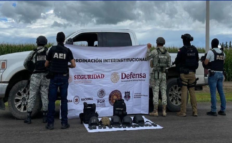 Al revisar el automotor, se detectó que contaba con reporte de Robo en Texas, EU. Localizando en el interior de dicho vehículo 15 cargadores para arma larga, 5 cascos balísticos y 2 chalecos antibalas, además de casquillos balísticos asegurados en la escena.