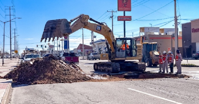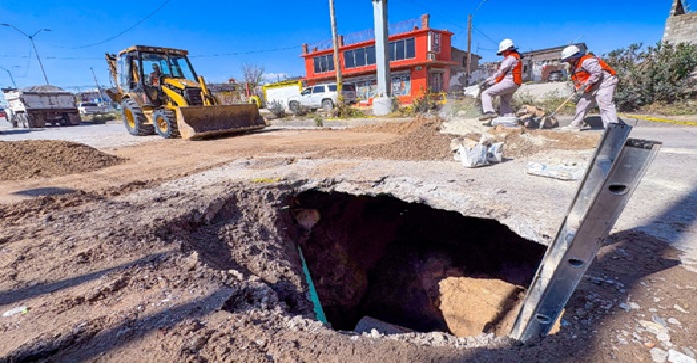 La Junta de Agua y Saneamiento de Juárez (J+) está trabajando este martes en la reparación de seis de los 16 hundimientos que se formaron tras las lluvias en la ciudad, logrando concluir la sustitución de dos tuberías dañadas, ubicadas en las calles Clouthier y Mitla, así como en Carlos Amaya y Borreguero, donde ya se realizan trabajos de bacheo.