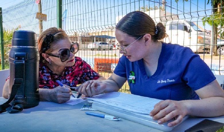 Al terminar la visita, la J+ llevó al parque de la colonia, una feria de servicios que reunió a cientos de personas, en donde se ofrecieron convenios y descuentos, además de módulos de vacunación, actas de nacimiento, inscripción a Medi Chihuahua y cartas de no antecedentes penales.
