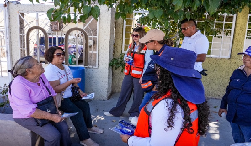 Personal de la Junta de Agua y Saneamiento de Juárez recorrió las calles de la colonia Campestre Virreyes, atendiendo de manera directa las solicitudes de los vecinos.