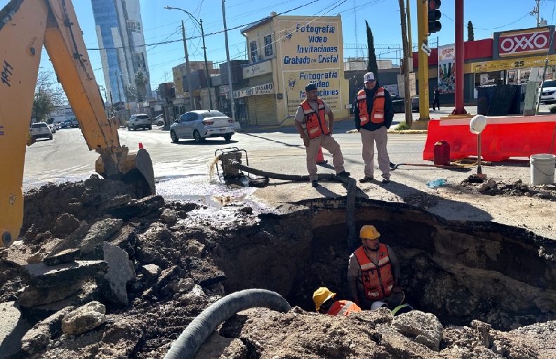 Desde temprana hora, cuadrillas del departamento de Agua Potable, acudieron al cruce de las calles Ignacio Mejía y Lerdo, donde se realizan labores de reparación en una línea de 12 pulgadas, informó la ingeniera Tanahili Gaytán.