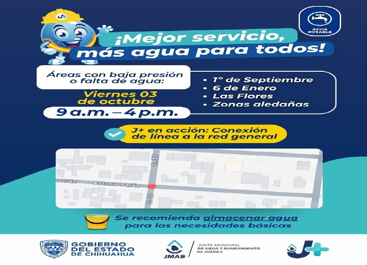 Este viernes 3 de octubre, la Junta de Agua y Saneamiento de Juárez conectará una línea de agua potable a la red general.