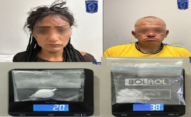 Elementos de la Agencia Estatal de Investigación (AEI), arrestaron a quienes se identificaron como Fernando G. S., y Ericka Nohemí I. P., por delitos contra la salud, en Ciudad Juárez.