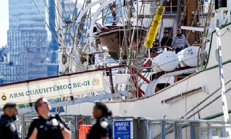 El accidente ocurrió cuando el majestuoso buque escuela blanco Cuauhtémoc partía del muelle 17 del Bajo Manhattan, en el East River, poco después de la puesta de sol del sábado.
