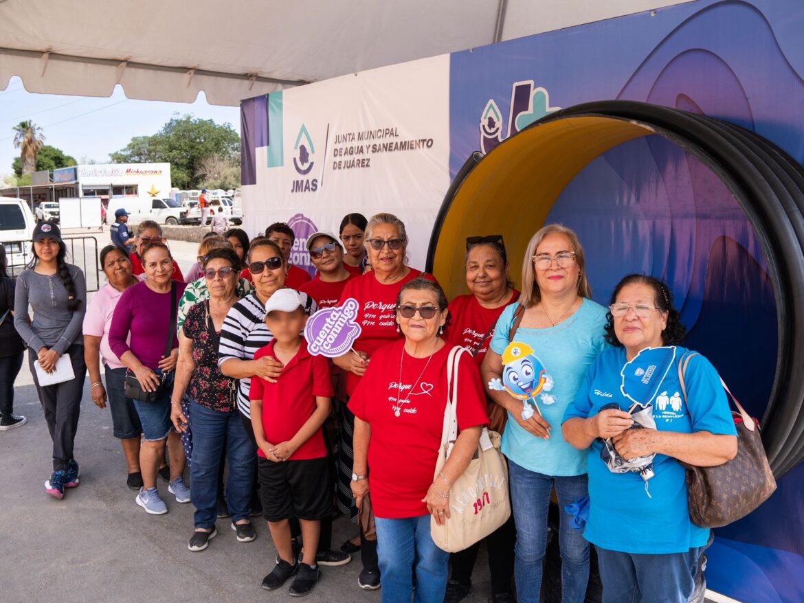 Cientos de familias acudieron el jueves a la inauguración del colector Norzagaray, evento en el cual recibieron pláticas sobre cultura del agua y se tomaron la foto de recuerdo en un stand instalado con la tubería que fue reemplazada por la Junta de Agua y Saneamiento de Juárez para mejorar el drenaje sanitario en la zona. Además, plasmaron su firma y agradecimientos en una pared, que formará parte de la historia de la J+.