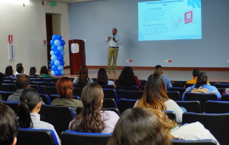 Después de una pausa, en la que los asistentes pudieron degustar diversos platillos, snacks y postres saludables preparados por los estudiantes de la carrera de Nutrición, el público regresó al auditorio para escuchar la conferencia “Lo último en tecnología y medicamentos para la diabetes”, a cargo del doctor Isaac Monge.