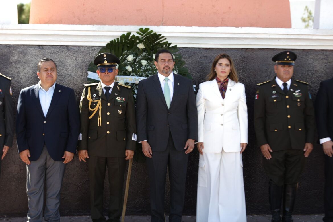 La ceremonia se llevó a cabo en el monumento a los Niños Héroes y estuvo encabezada por el Presidente Municipal, Cruz Pérez Cuéllar y el General Brigadier de Estado Mayor, José Salud Lemus Cisneros, comandante de la Guardia Militar de Juárez, quienes colocaron una ofrenda floral en honor a los cadetes.