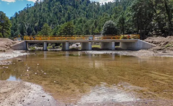 La Secretaría de Turismo informa que las obras de construcción de los dos puentes vehiculares que darán acceso a la Cascada de Cusárare, registran un 65 por ciento de avance y se prevé su conclusión antes de finalizar el año