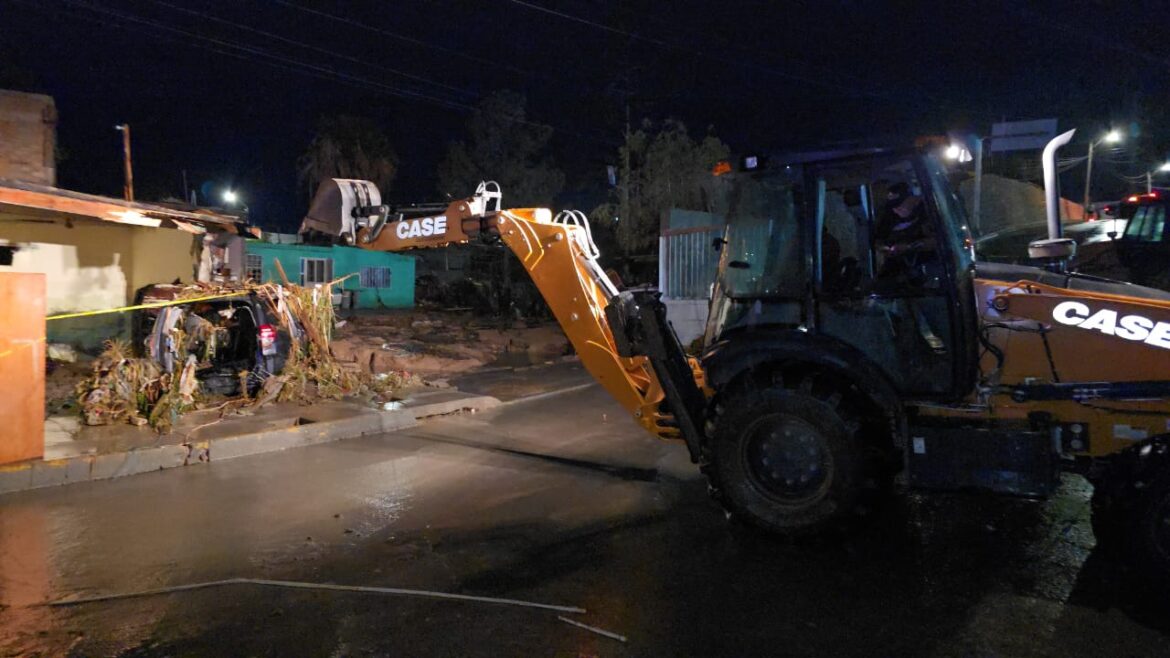 Ante las fuertes lluvias que se han presentado en los últimos días, personal de la Dirección General de Obras Públicas continúa trabajando con la limpieza retirando la tierra de arrastre en la colonia Fronteriza y áreas aledañas, con el fin de despejar los residuos que afectaron las viviendas.