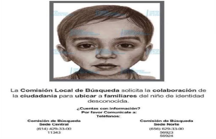 Autoridades difundieron el retrato de un niño que fue asesinado y abandonado en un predio al sur de Ciudad Juárez, con el objetivo de obtener información que permita localizar a sus familiares.