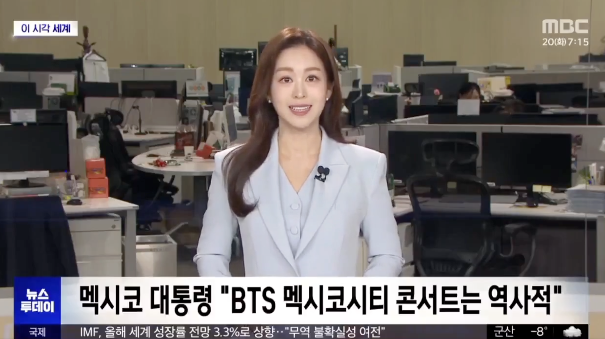 La información fue difundida en el noticiero News Today, de la cadena MBC, durante su emisión del martes 20 de enero de 2026, como parte de la cobertura internacional sobre la gira mundial de BTS tras concluir su servicio militar obligatorio.