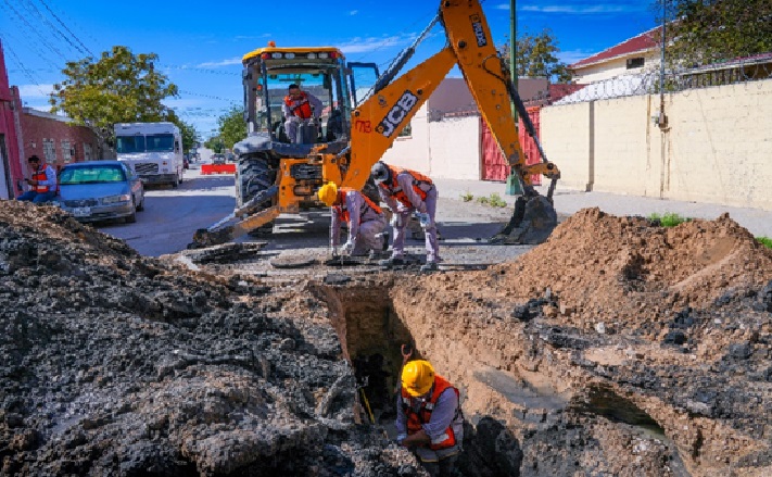 Cuadrillas del departamento de Alcantarillado laboraron por más de seis horas en el cruce de las calles Oro y María Martínez, donde fue necesaria una excavación a dos metros de profundidad, utilizando maquinaria especializada, como una retroexcavadora, un camión de inyección y succión (Vactor) y un camión de volteo, informó el ingeniero Iván Gaytán, coordinador del distrito 3 de Alcantarillado.