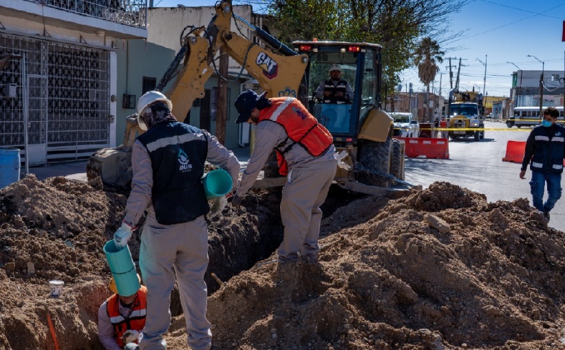 De manera paralela, en esta misma zona la J+ trabaja en la reparación de un hundimiento expuesto en el cruce de las calles 5 de Febrero y Antonio de Otermin, donde se instalan aproximadamente 18 metros de tubería de alcantarillado que ya había cumplido su vida útil.