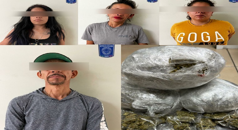 La detención en flagrancia de Abigail V. P., de 32 años; Marisol H. N., de 42 años; Yuliana D. G., de 30 años y Hobed Isaí R. P., de 44 años de edad, se realizó en la calle Portal del Pino del fraccionamiento Portal del Roble, en donde se les aseguró lo siguiente: