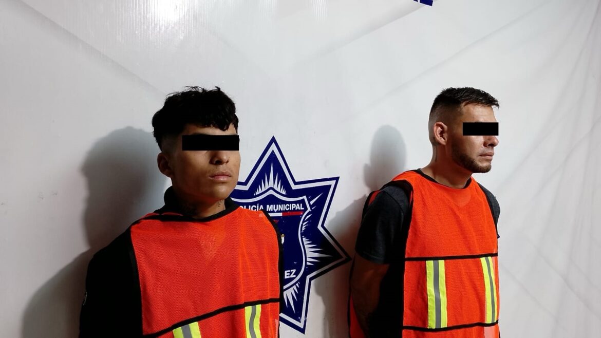 Agentes de la Secretaría de Seguridad Pública Municipal arrestaron a Alfredo AlejandroO. S. y Víctor Manuel V. N., por su presunta responsabilidad en la comisión de delitos por la posesión ilegal de arma de fuego.