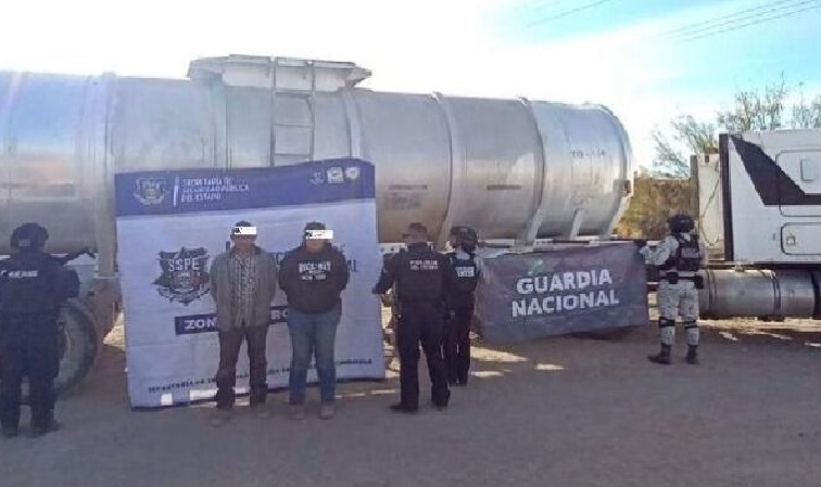 Ante esta situación, los elementos de la SSPE y de la Guardia Nacional iniciaron una persecución, logrando darle alcance en flagrancia. Al realizar la inspección correspondiente, se cuestionó a los tripulantes sobre la procedencia del hidrocarburo que transportaban; sin embargo, estos no pudieron acreditar su legal origen, ni proporcionar información que sustentara su traslado.