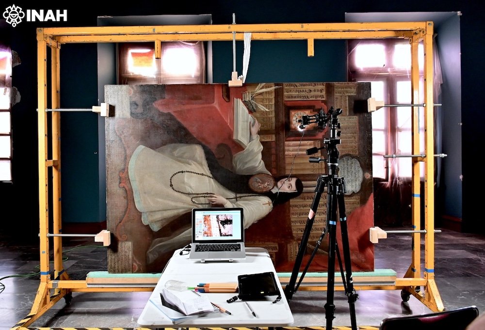 El experto abunda que, durante la primera semana, con equipos portátiles se registró la obra con técnicas de imagen en el espectro visible y ultravioleta, cuyas resultantes permitirán obtener detalles de su superficie, como la dirección de las pinceladas, características de las veladuras y alteraciones, así como los materiales en superficie.