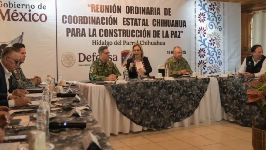 La gobernadora Maru Campos encabezó la sesión de la Mesa Estatal de Construcción de Paz que se llevó a cabo en Parral, con el fin de analizar las estrategias implementadas por los tres niveles de Gobierno para atender la seguridad en la región.
