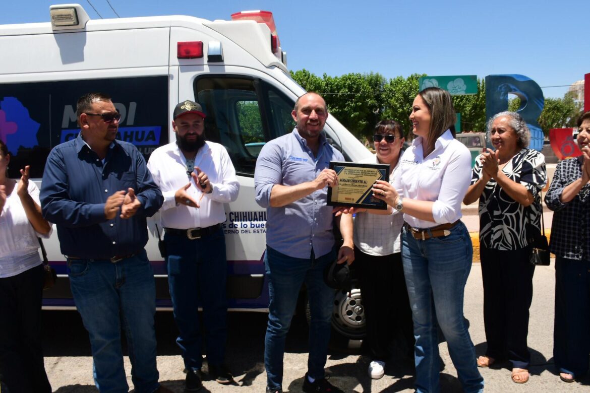Buenaventura, Chih.- Como resultado de las gestiones realizadas ante la Secretaría de Salud, la diputada del Distrito 01, Yesenia Reyes Calzadias, encabezó la entrega de una ambulancia totalmente equipada al Ejido Benito Juárez, en el municipio de Buenaventura. El objetivo es fortalecer la atención de emergencias en esta comunidad, que enfrenta un promedio de diez casos urgentes por semana y brinda cobertura a las familias de la región.
