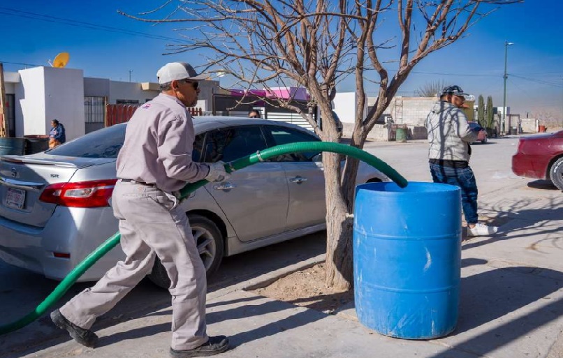 La Junta de Agua y Saneamiento de Juárez informa que la mañana de este viernes se realizó la entrega de 9 mil litros de agua potable mediante pipas a las familias de la colonia Pedregal de San Isidro.