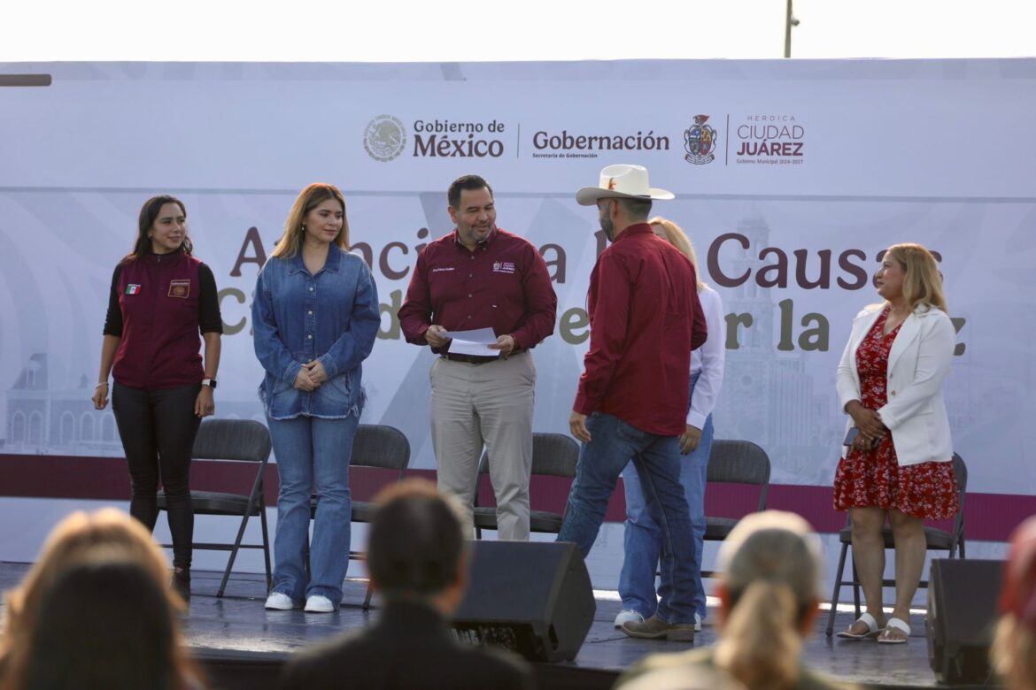 La coordinadora de Programas y Proyectos de la Secretaría de Gobernación, Areli Sarahí Rojas Rivera, informó que la Presidenta Sheinbaum Pardo ha afirmado que trabajará para construir la paz en Juárez y esto se puede lograr en unidad con el alcalde Pérez Cuéllar