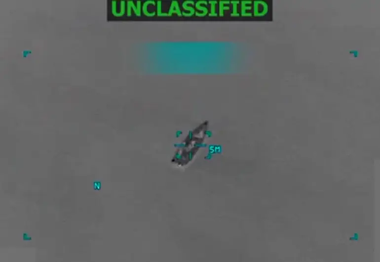 Trump afirmó que “inteligencia confirmó que la embarcación traficaba drogas, estaba asociada con redes narcoterroristas ilícitas y transitaba una ruta conocida de esas organizaciones”. El mensaje fue acompañado por un video en blanco y negro que muestra una lancha inmóvil antes de ser destruida por un impacto.