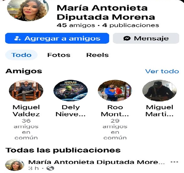 La diputada de morena, María Antonieta Pérez Reyes, informó a la ciudadanía sobre la creación de una cuenta falsa en Facebook que está siendo utilizada para suplantar su identidad con fines fraudulentos.