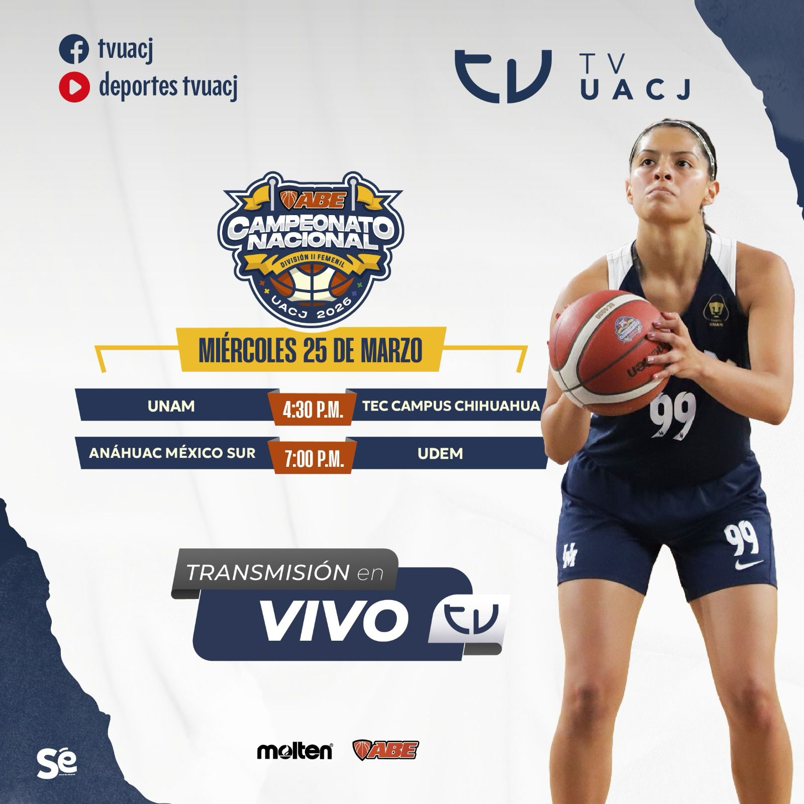 La gran final del Campeonato Nacional ABE 2026 División II Femenil se llevará a cabo este miércoles 25 de marzo en el Gimnasio Universitario de la UACJ, reuniendo a los mejores equipos del país en una jornada decisiva.