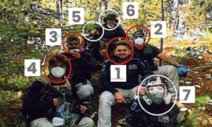 Las personas que corresponden a la fotografía de Milenio, en el orden señalado en la publicación, son: 1.- Pedro Román Oseguera Cervantes; 2.- Manuel Genaro Méndez Montes; 3.- César Alejandro V. U.; 4.- Javier Gerardo M. M.; 5.- José Alfredo J. Q.; 6.- Ricardo T. G. y 7.- Karina M.G.