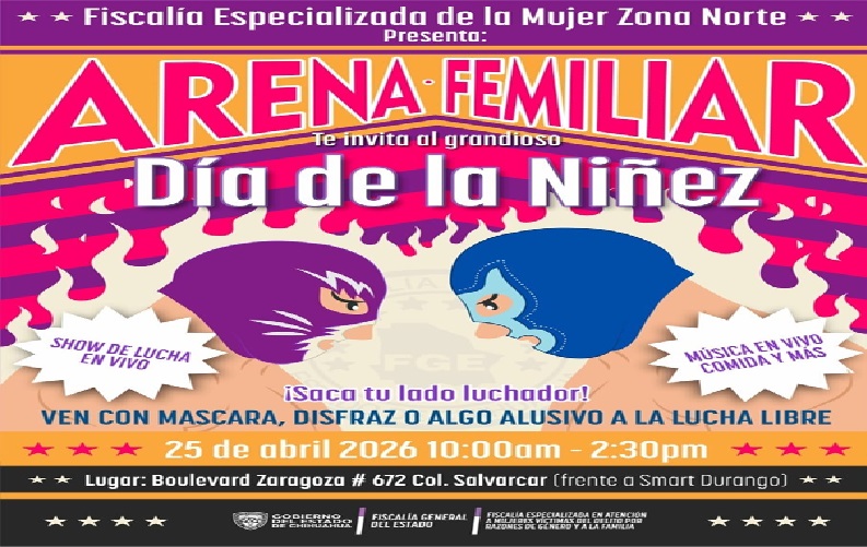 Como cada año y con el objetivo de consentir a los más pequeñitos, la Fiscalía Especializada en Atención a Mujeres Víctimas del Delito por Razones de Género y a la Familia, Zona Norte, realizará el festejo del “Día de la Niñez”, y en esta ocasión la temática será de lucha libre.