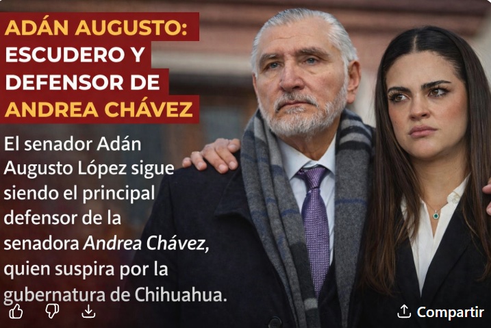 El senador Adán Augusto López sigue siendo el principal escudero y defensor de la senadora Andrea Chávez, quien suspira por la gubernatura de Chihuahua.