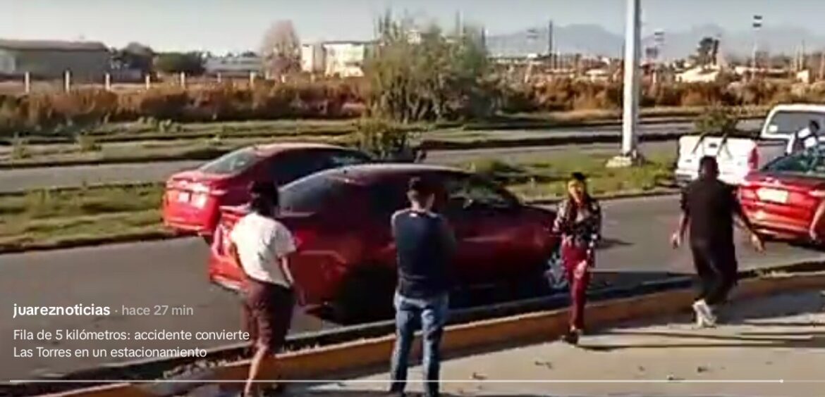 Un accidente vial detuvo el tráfico por más de una hora la tarde de este jueves en la avenida De las Torres, casi al llegar a la Gómez Marín, generando una fila de vehículos que se extendió por más de cinco kilómetros.