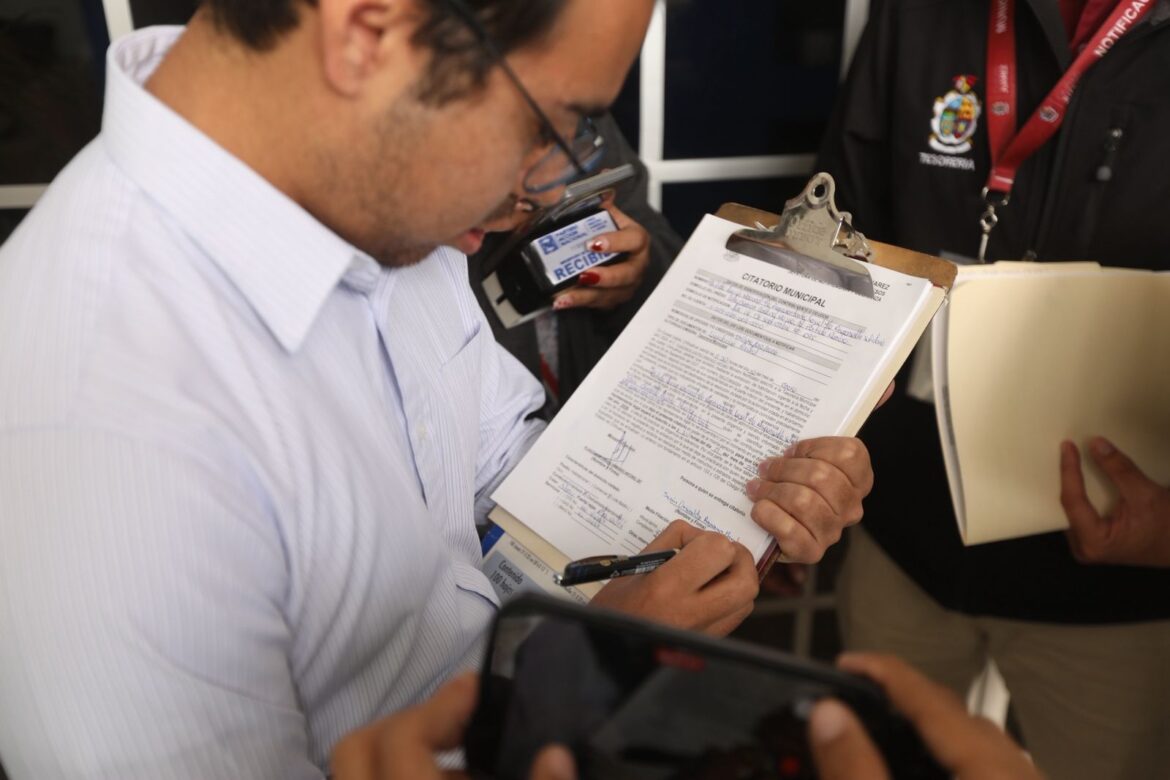 La diligencia fue encabezada por el secretario del Ayuntamiento, Héctor Rafael Ortiz Orpinel, junto con personal de la Dirección de Ingresos de la Tesorería Municipal, quienes acudieron a los inmuebles para iniciar formalmente el proceso de notificación correspondiente.