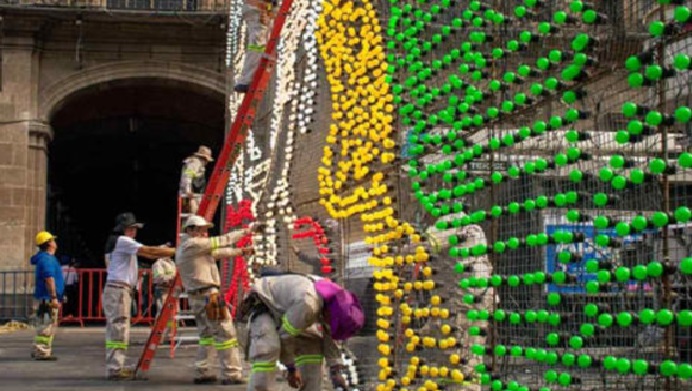 Además, presenta magueyes y hojas de laurel incrustadas en banderas tricolor, como un símbolo de fortaleza y triunfo, informaron autoridades de la Ciudad de México.