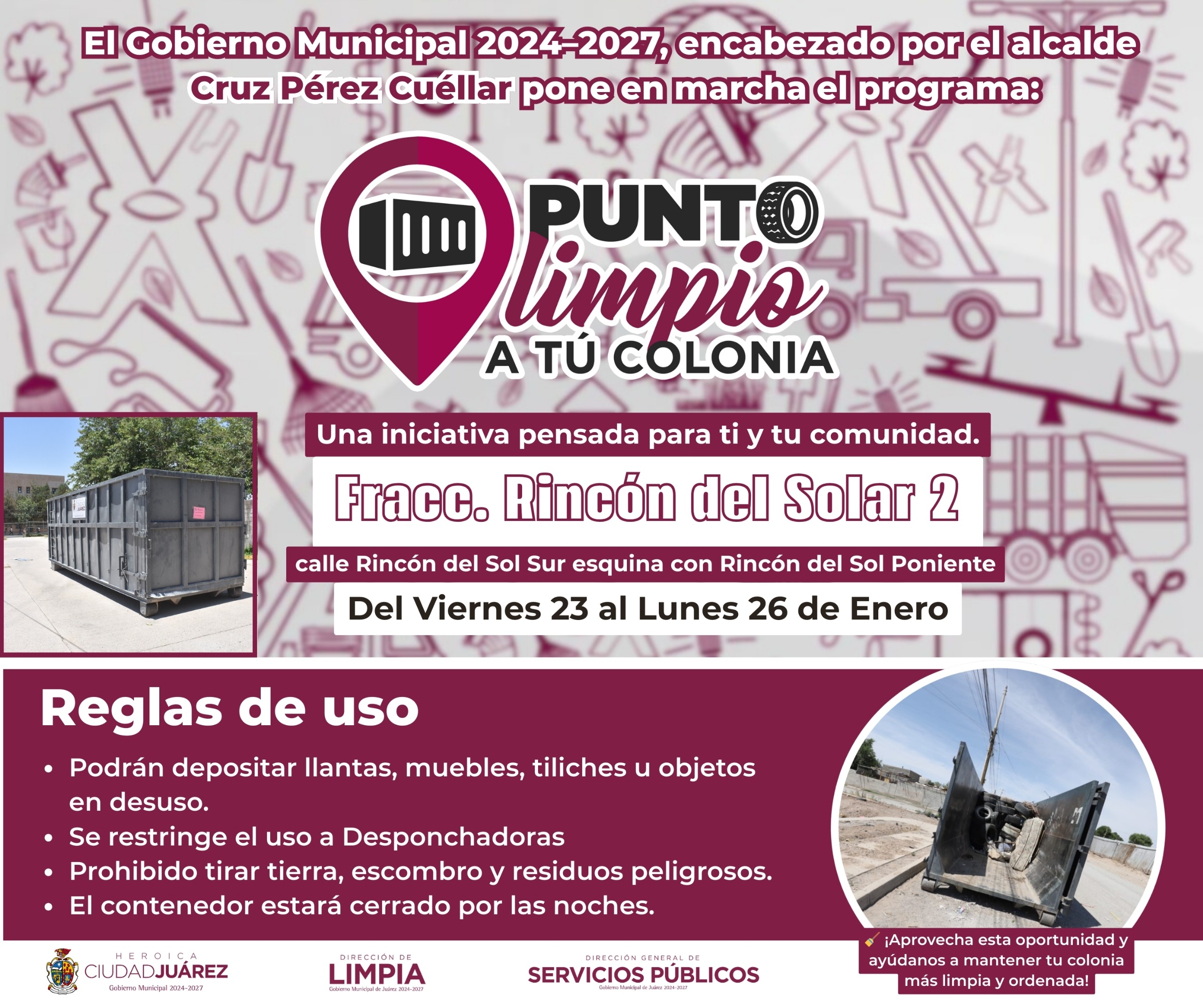 Solís Kanahan hizo un llamado a las y los vecinos a colaborar con estas acciones, utilizando correctamente los Puntos Limpios y contribuyendo a mantener colonias más limpias, ordenadas y seguras.