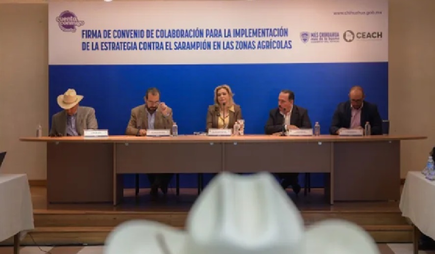 La gobernadora Maru Campos firmó un convenio de colaboración con el Consejo Estatal Agropecuario (CEACH), por medio del cual se integrarán a la campaña de vacunación que el Gobierno del Estado implementa en toda la entidad.