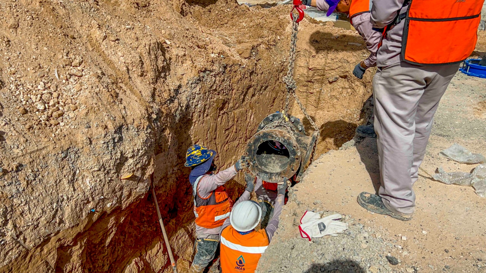 La Junta Municipal de Agua y Saneamiento de Juárez, avanza en su proyecto de sectorización con la interconexión este viernes 26 de marzo, de una línea de conducción de los pozos 207 y 209, hacia el tanque San Francisco.