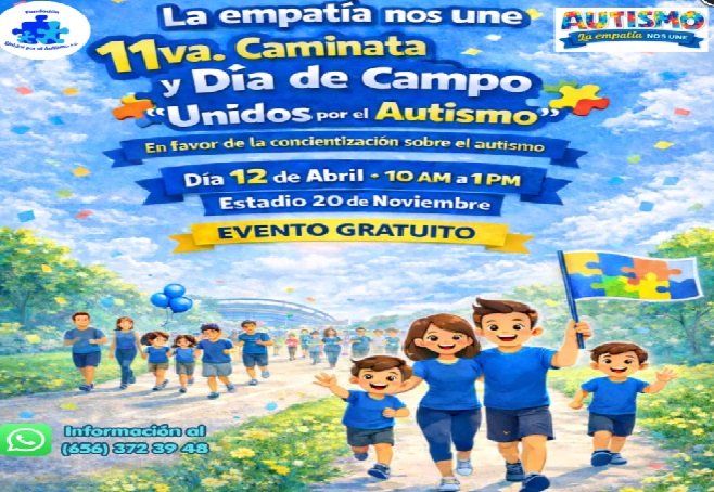 Con el objetivo de promover la concientización sobre el autismo y fomentar la inclusión, se llevará a cabo la onceava edición de la Caminata y Día de Campo “Unidos por el Autismo” en esta ciudad.