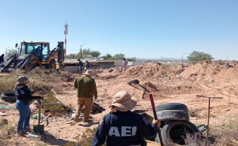 El operativo efectuado por elementos de la Agencia Estatal de Investigación (AEI), del Grupo K-9, personal de la Dirección de Servicios Periciales y Ciencias Forenses, contó con el apoyo de la Junta Municipal de Agua y Saneamiento (JMAS), que proporcionó maquinaria para remover la tierra.