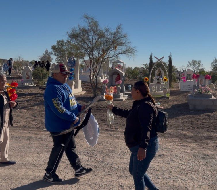 La titular de la dependencia, María Antonieta Mendoza, informó que durante el sábado y domingo estuvieron en los camposantos Colinas de Juárez, Chaveña y San Rafael, en donde entregaron las flores a las personas para que los colocaran en las tumbas de sus difuntos.