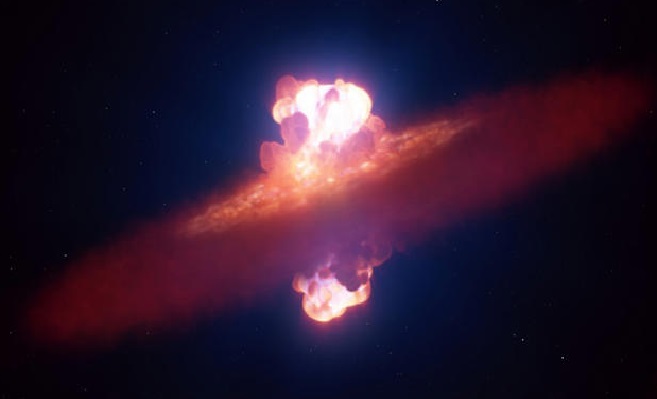 Lo que vieron fue al astro condenado rodeada en su ecuador por un disco preexistente de gas y polvo, con la explosión empujando material hacia el exterior desde el núcleo estelar para distorsionar la forma de la estrella hasta asemejarla a una aceituna vertical.