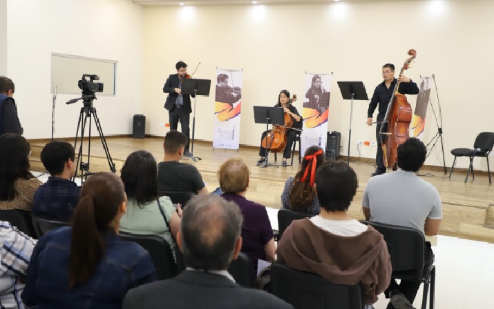 Este Ensamble conformado por Margarita Vargas Carrillo (violonchelo), Roberto Jurado (violín) y José Ernesto Pérez (contrabajo) le dieron vida a las catorce piezas musicales que conformaron el programa de este concierto. Entre ellas Scherzo Nr.32 (Nannerl), Minuet y Trio Nr.18, Andante en Do K. 1a, Sinfonía No. 1 K.16, Polonesa 2 Op. 1, Minueto en Do K.5, ente otras.