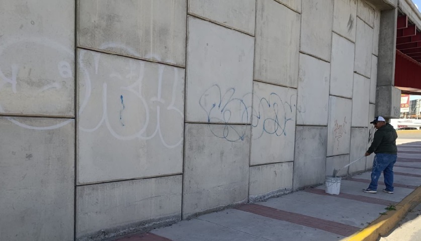 La cuadrilla antigraffiti de la Dirección de Limpia, mantiene una actividad constante en distintos puntos de la ciudad, realizando labores para mejorar la imagen urbana y recuperar espacios públicos, dio a conocer el titular de la dependencia, Gibran Solís.