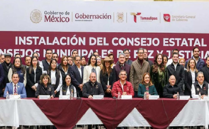 En su participación en la instalación del Consejo Estatal y Consejos Municipales de Paz y Justicia Cívica, presidida por el gobernador Américo Villarreal Anaya, reconoció que las acciones contra la delincuencia han permitido bajar el índice de violencia y criminalidad en Tamaulipas.